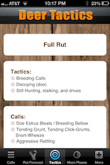 For each deer call, Deer Tactics provides you with tips on how and when to use each call. Use your app in the field to call in your trophy buck, or listen to the calls to practice your calling technique.